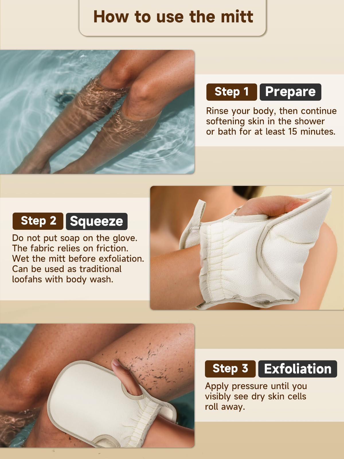 - Spa-like Deep Exfoliation: Provide spa-like experience into your self-care routine at home with deep moroccan exfoliating gloves. Our korean skin scrubber gives you the smoothest skin ever! Use this dead skin remover for body deep exfoliation 2–4 times per month, you’ll get improved skin texture, better product absorption, and fewer bumps & ingrown hairs, all while combating keratosis pilaris
