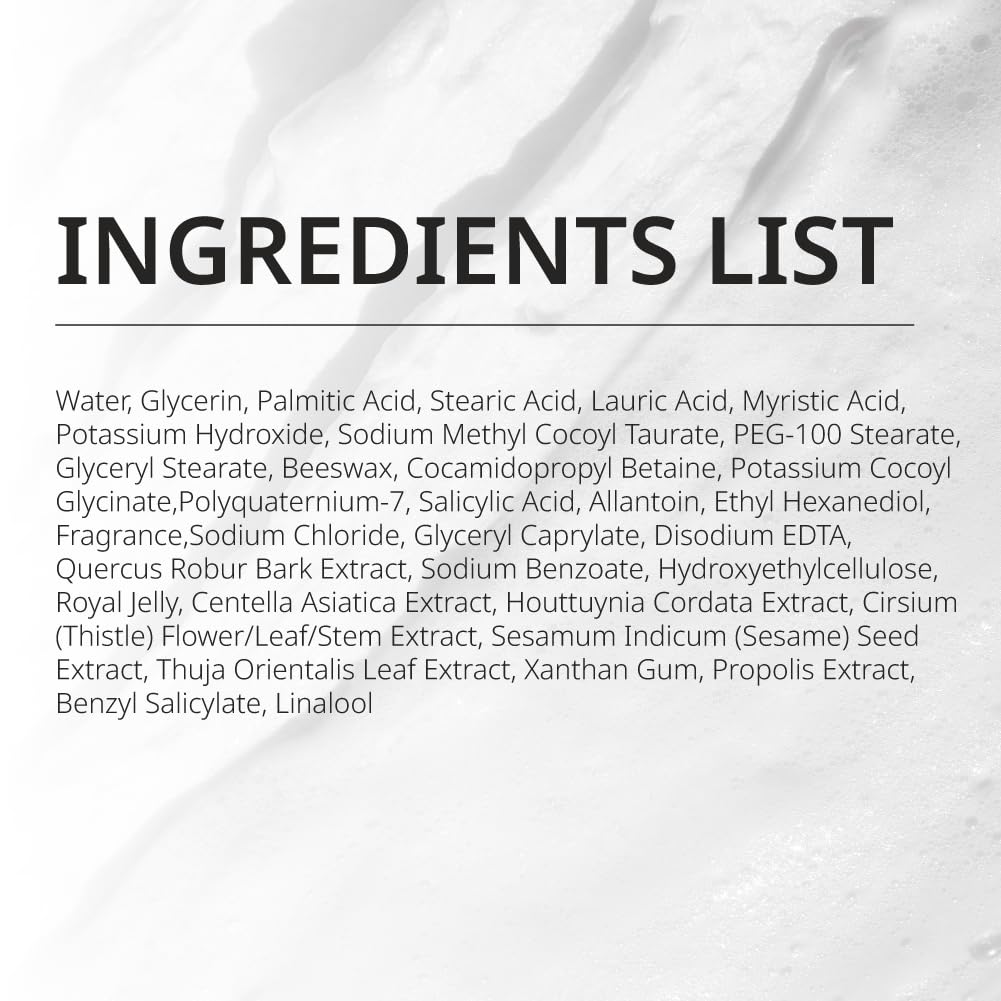 - [Smooth Skin] Using only a pea size amount of the creamy cleanser will turn into a rich bubbly soft foam that deep cleans your skin while keeping it hydrated. Our special patent substance (US Patent No. 11,154,580 B1) is especially suitable for acne-prone skin.