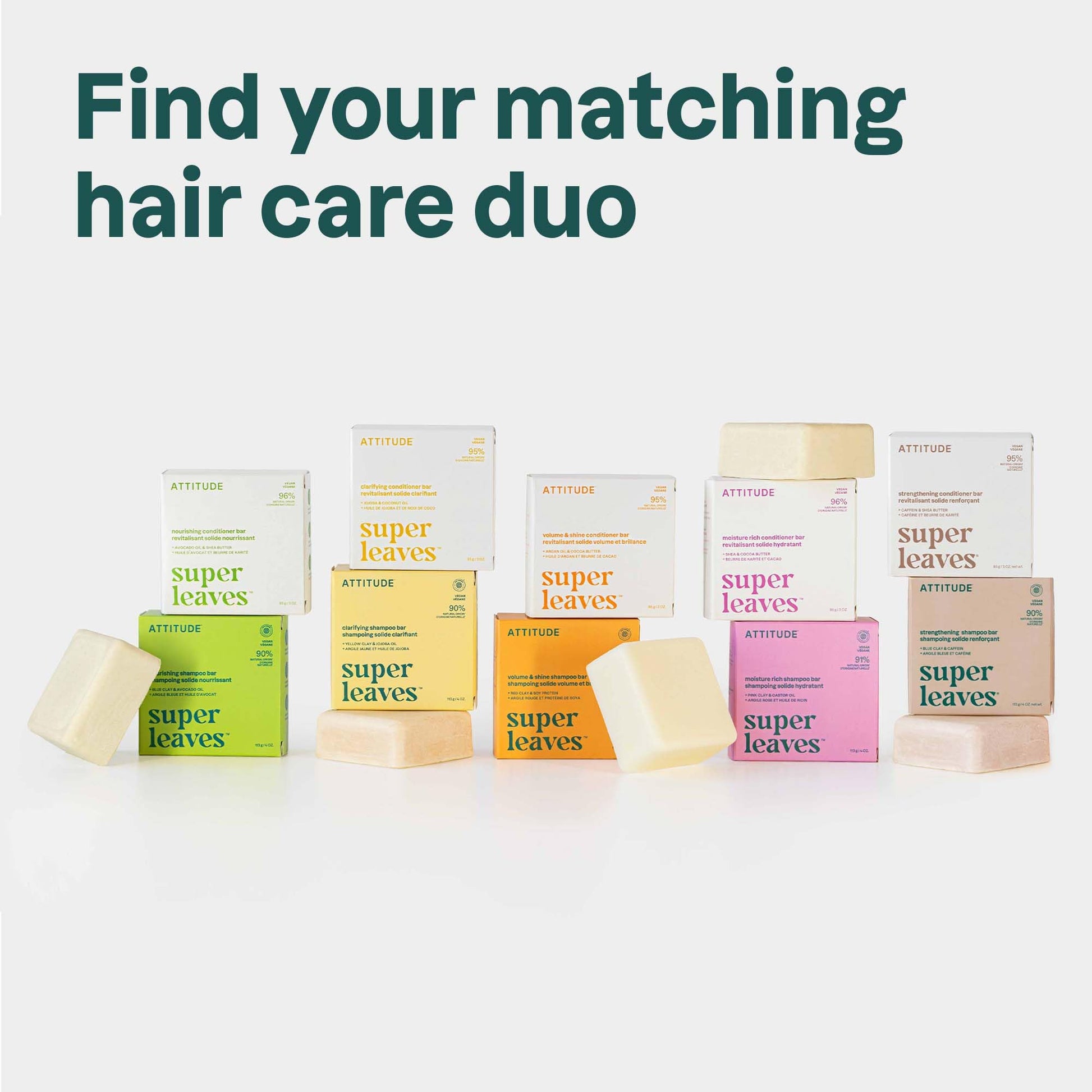 ATTITUDE Moisture Rich Conditioner Bar, Natural Origin, for Ultra Dry and Damaged Hair, Shea & Cocoa Butter, Clean ingredients, Vegan, Coconut & Wild Berries, 3 Oz