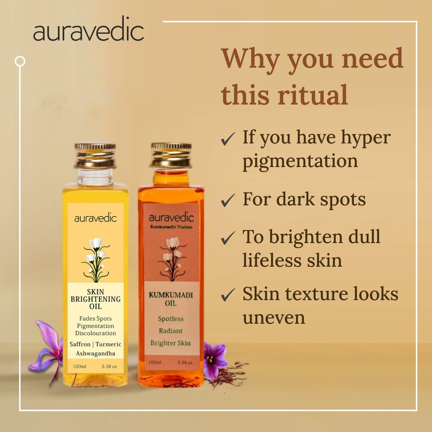 Auravedic Kumkumadi Oil & Skin Oil Combo | Saffron, Turmeric and Winter Cherry Infused Face Moisturizer | Hydrating & Moisturizing | for All Skin Types | 3.38Fl Oz (100ml)