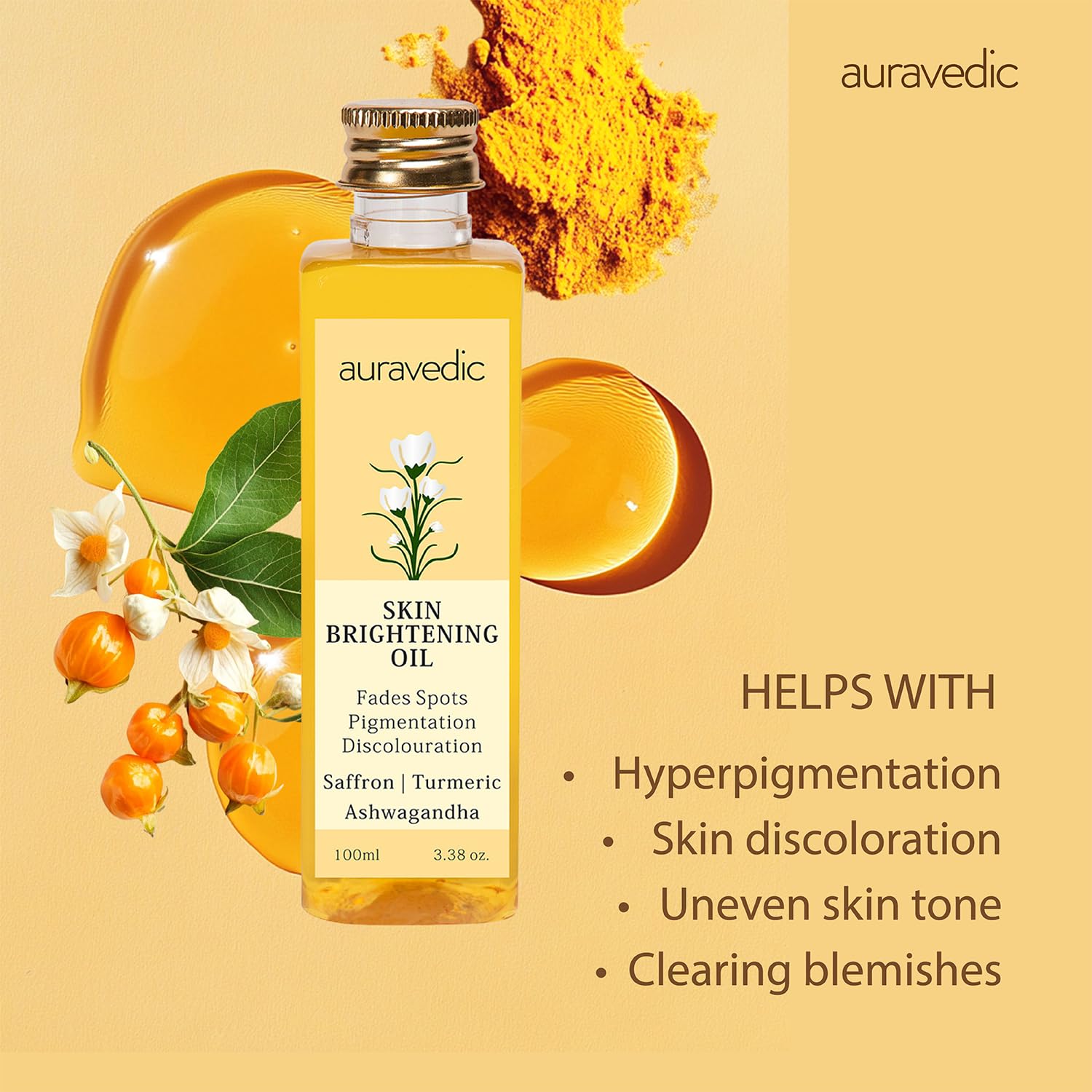 Auravedic Skin Oil for Radiant Skin | Face Massage Oil with Turmeric, Saffron & Ashwagandha | Suits Oily, Dry & All Skin Types | Organic & Natural | 3.38 Fl Oz (100ml)