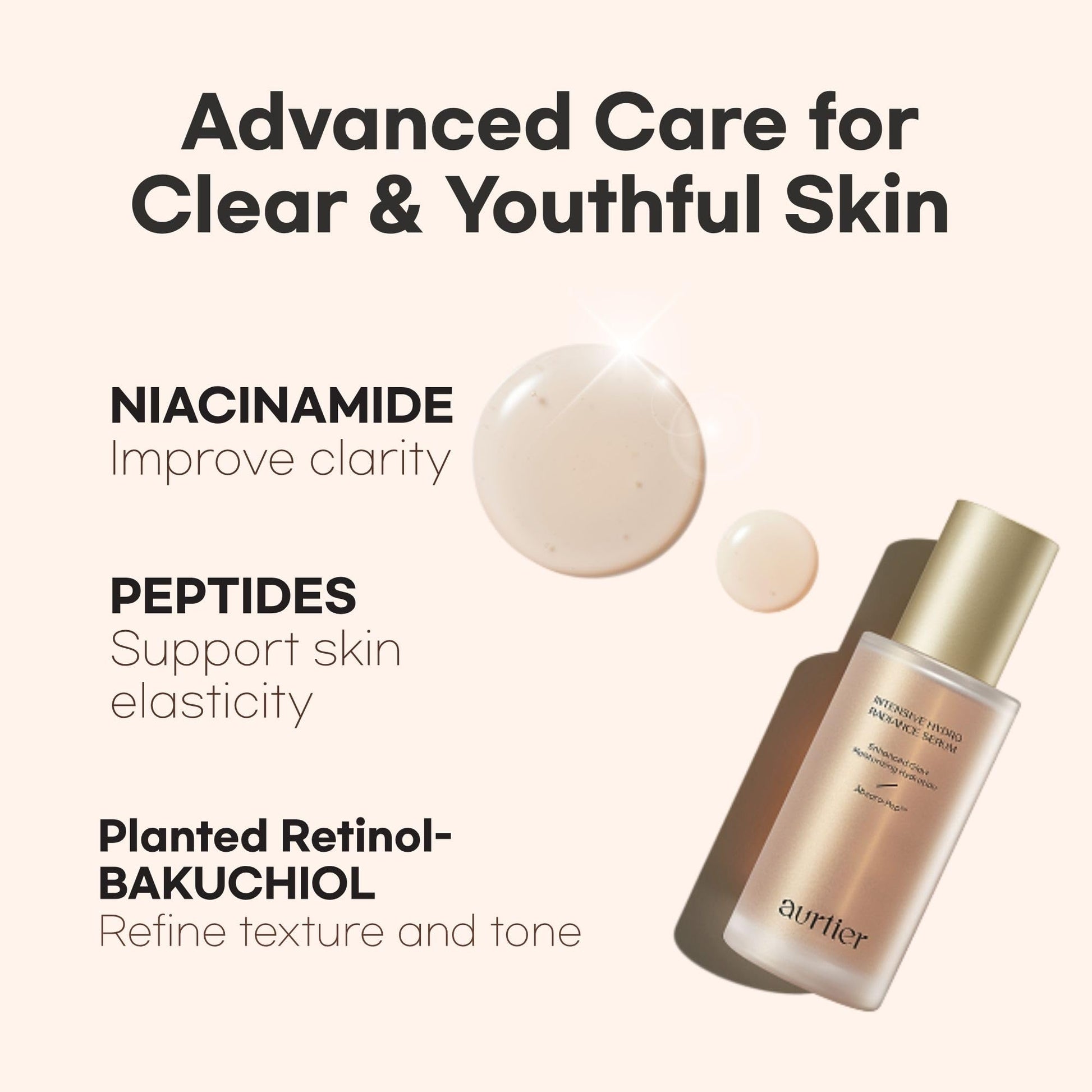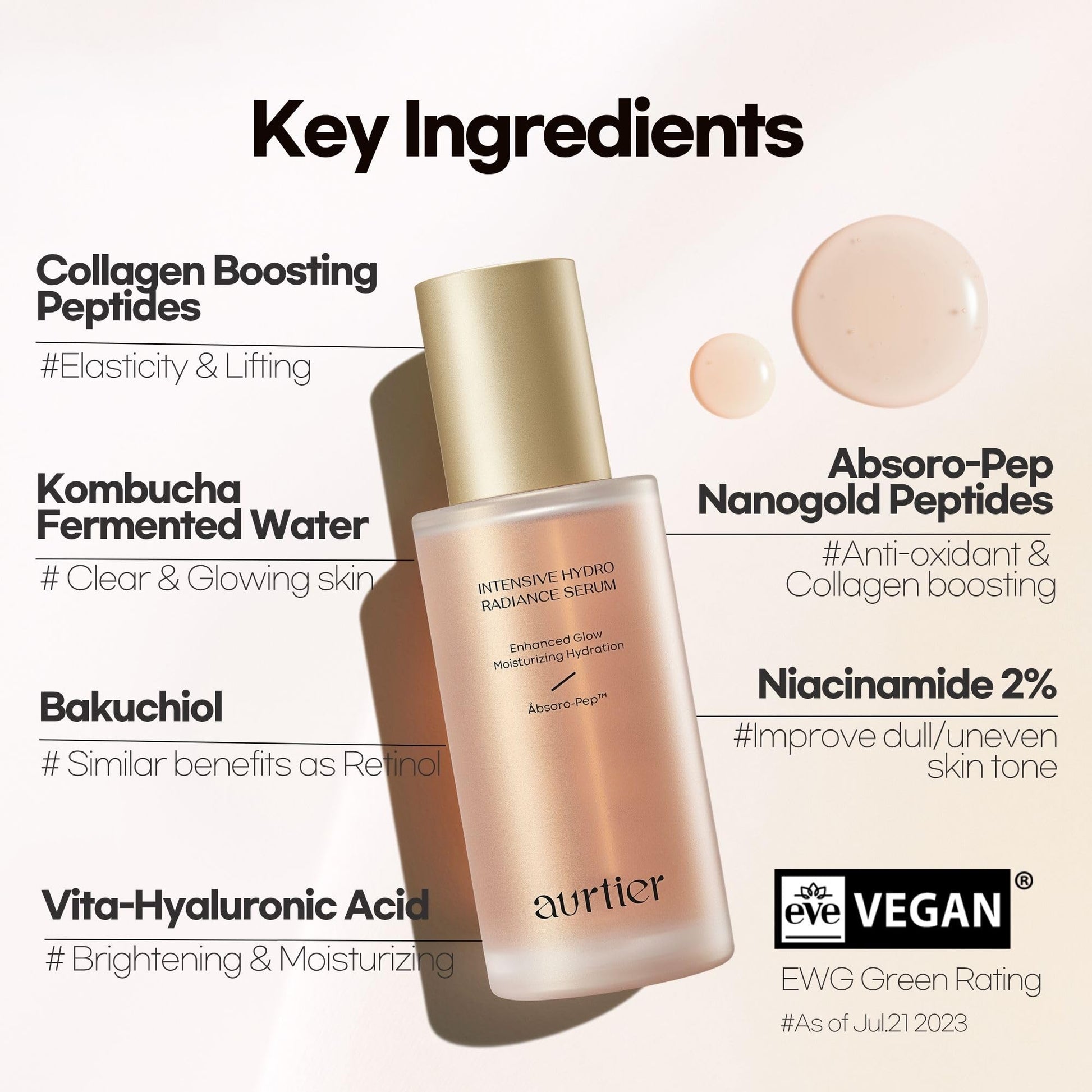 Aurtier Intensive Hydro Radiance Serum, Dewy & Deep Hydration, Glow Glass Skin, Anti-aging care with Niacinamide, Vitamin C, Collagen, Korean Skin care 1.69 fl oz