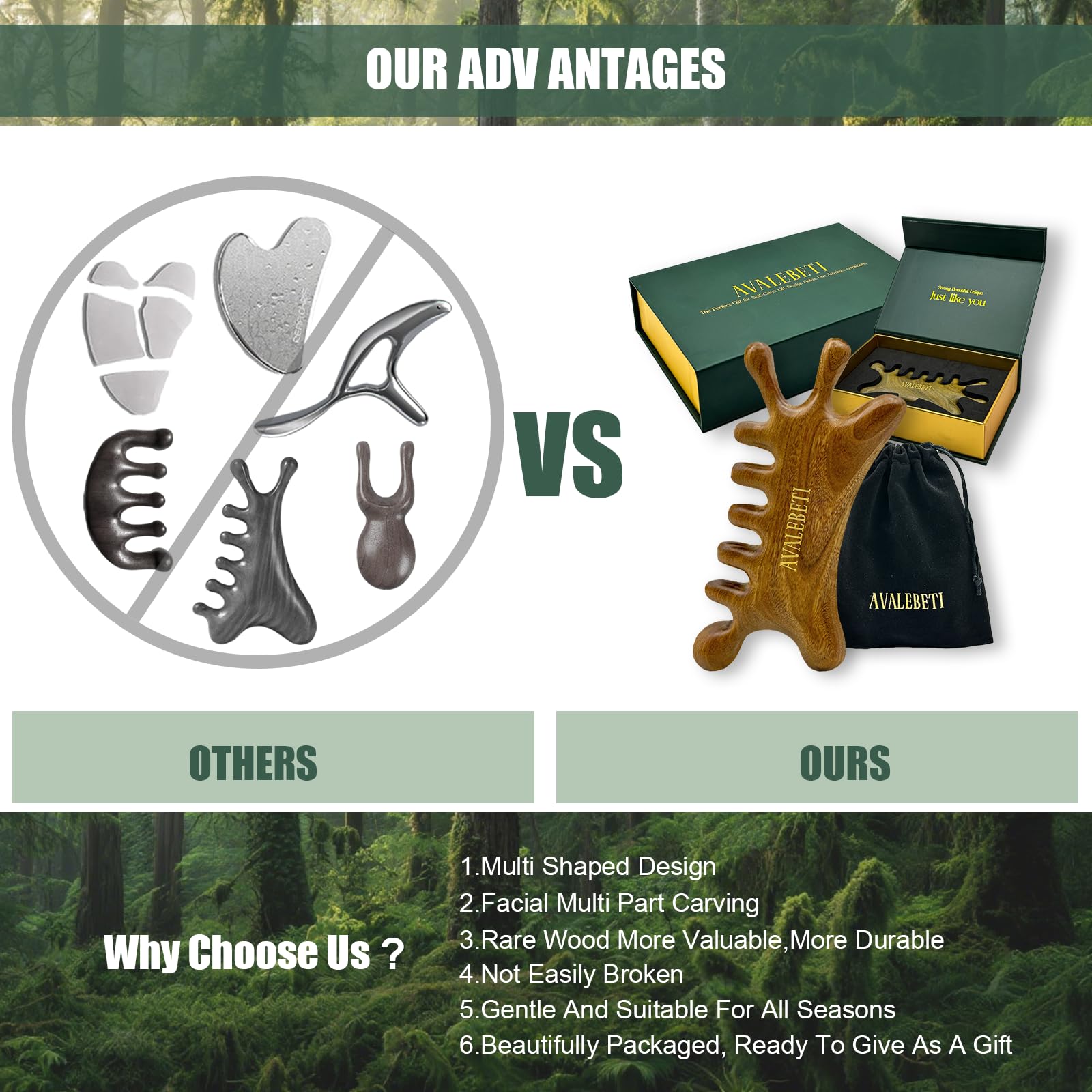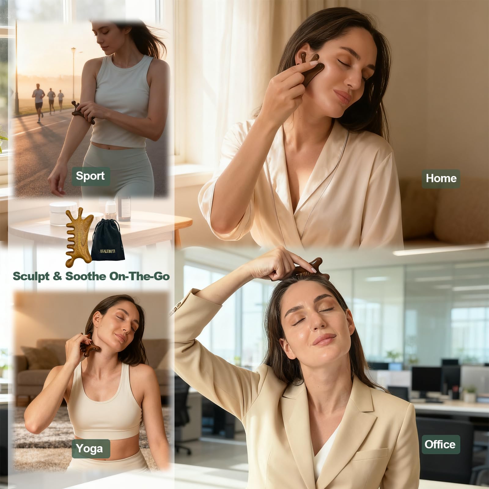 - Gentle on Sensitive Skin - Crafted from 100% natural sandalwood and hand-polished for a smooth, snag-free surface. Unlike jade or stainless steel, the AVALEBETI gua sha tool is a natural facial massage tool that is gentle and non-irritating, delivering a more comfortable experience—ideal for sensitive skin.
