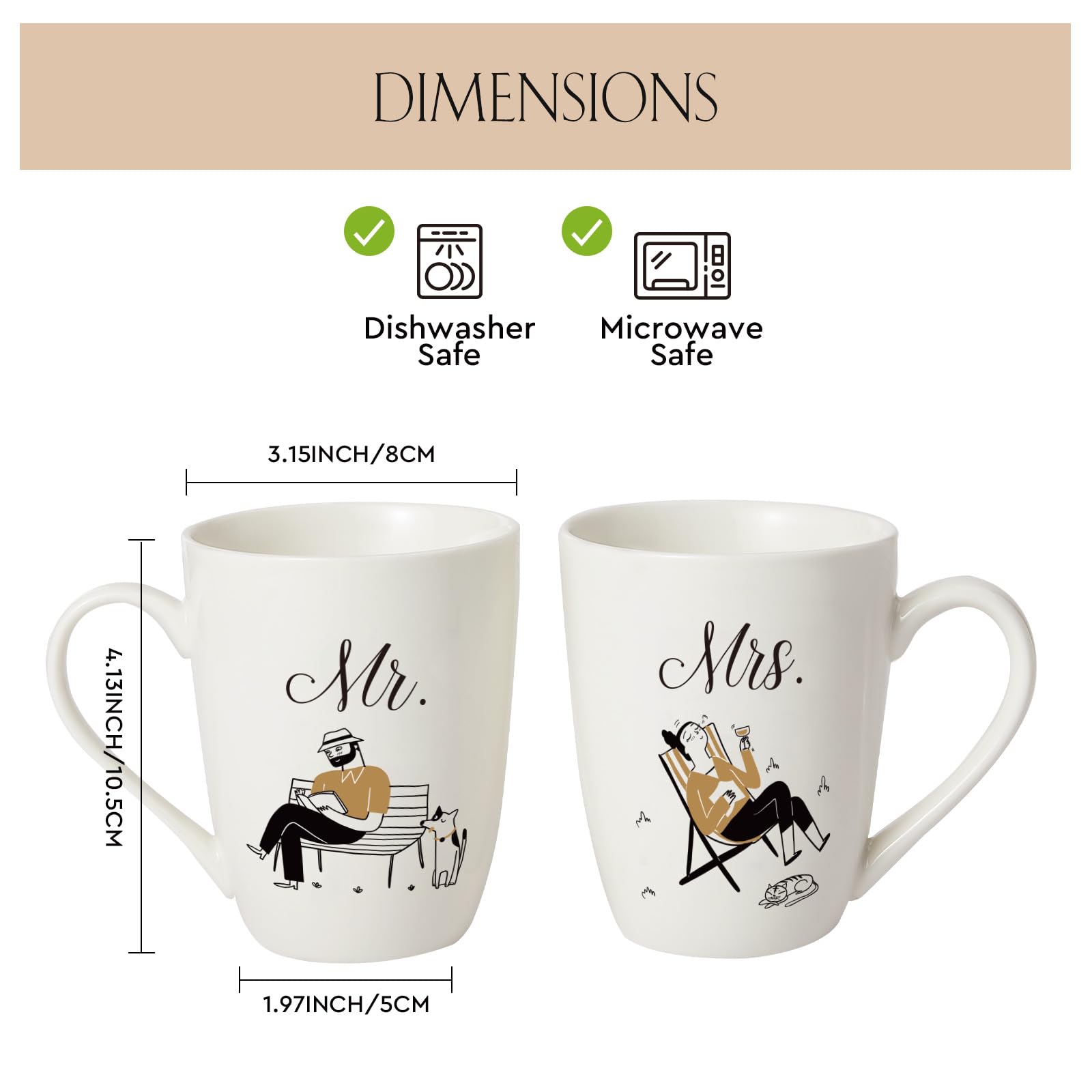 AW BRIDAL 16 OZ Mr and Mrs Coffee Mug Set of 2, Ceramic Engagement Anniversary Honeymoon Wedding Gifts for Newlywed Couples, Bridal Shower Bachelorette Gift For Bride