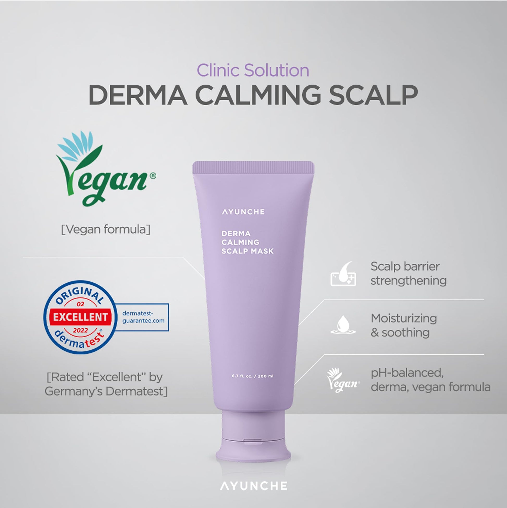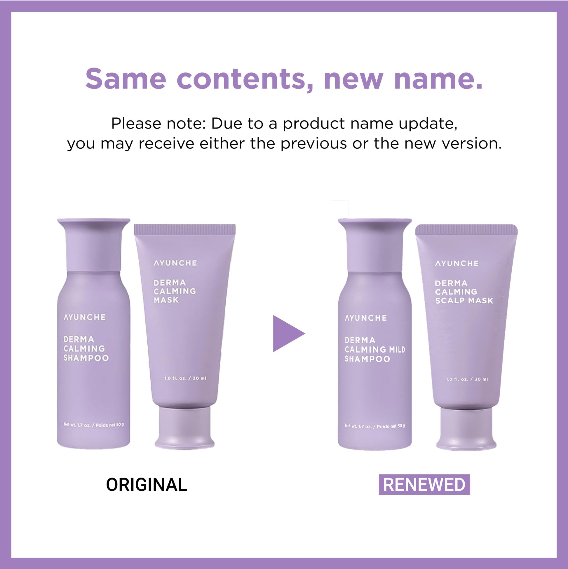 AYUNCHE Derma Calming Vegan Shampoo 1.76oz + Hair Mask 1oz Mini Kit [For Dry & Sensitive Scalp] | Gentle Hydrating Scalp Care | Strengthen Scalp Barrier | Korean Salon Brand