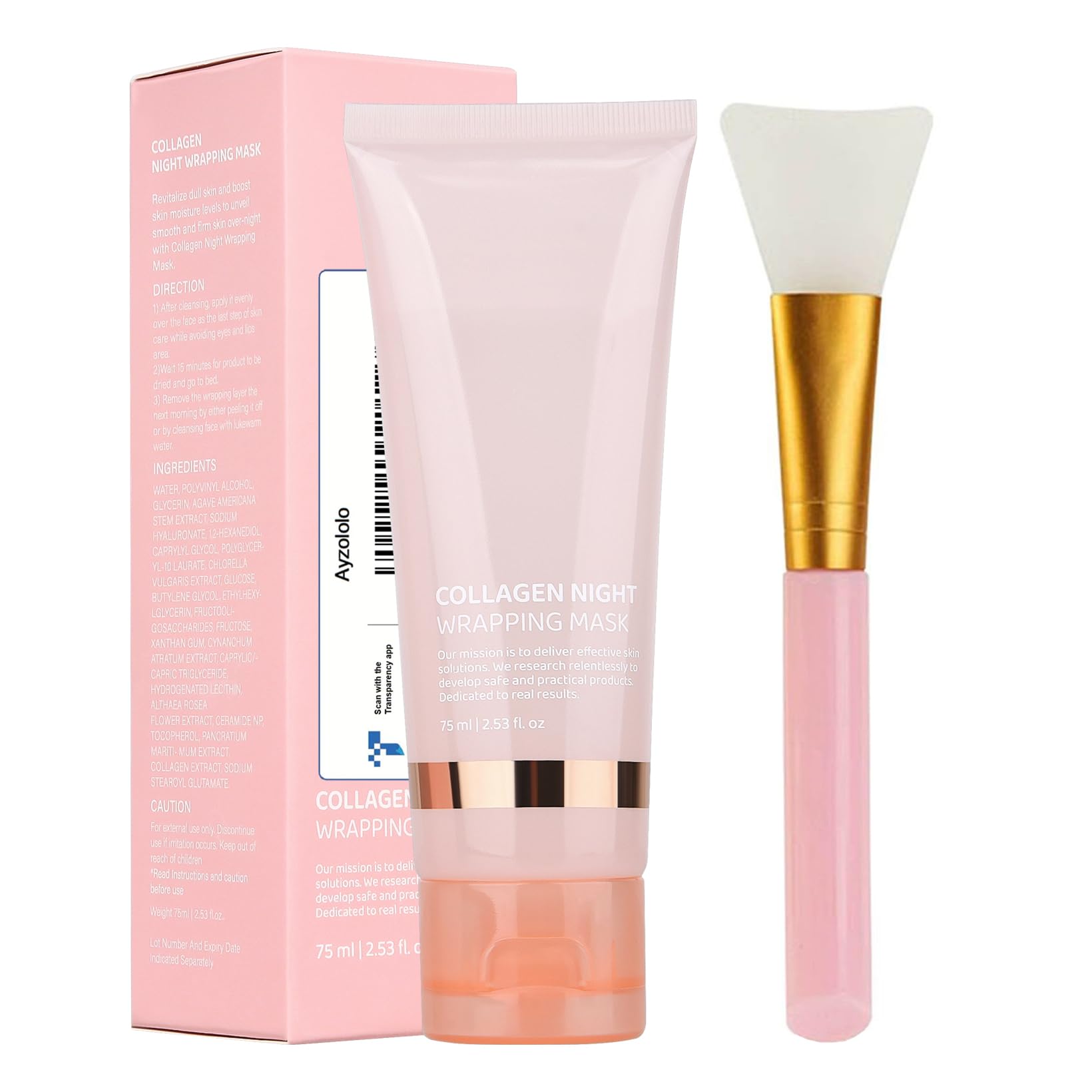 Ayzololo Collagen Night Wrapping Mask,Overnight Collagen Wrapping Mask,Collagen Peel Off Face Mask,Elasticity and Hydration Care,2.53 fl.oz(Brush Included)