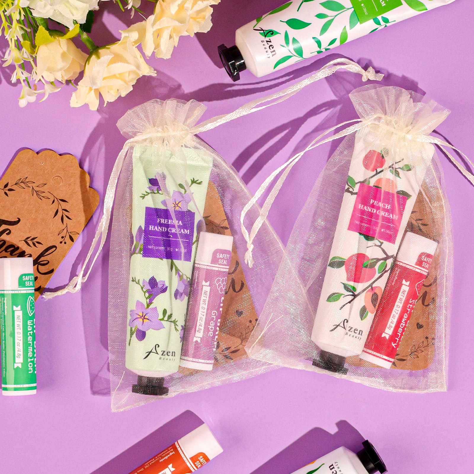 AZEN 30 Sets Bulk Gifts, Hand Cream and Lip Balm Bulk Set with Organza Bag Thank You Card, Baby Shower Wedding Gifts for Guests, Bridal Wedding Favors for Guests,Thank You Gifts for Women