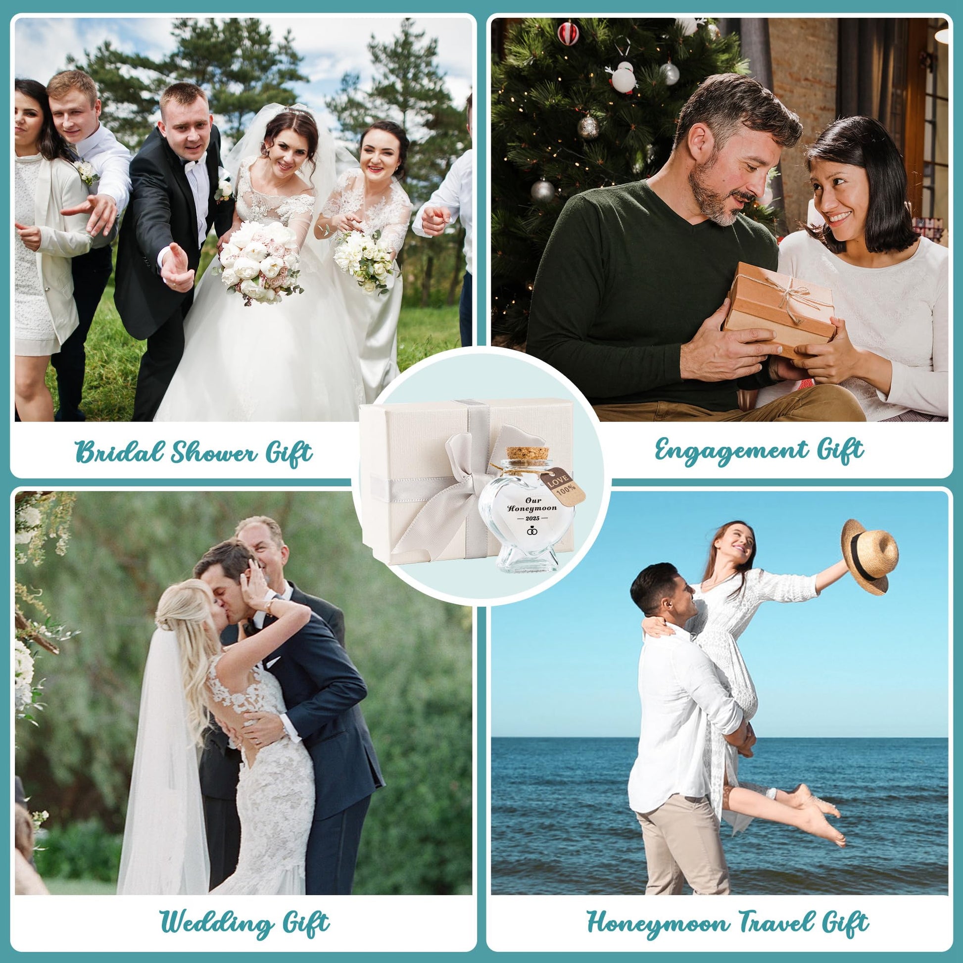 - đ Ultimate Honeymoon Gift Jar - Celebrate the bride and groom with a unique keepsake that captures their love story! This heart-shaped glass jar is perfect for storing beach sand, love notes, or small souvenirs from their honeymoon. Presented in a beautiful gift box, itâs a must-have for bridal showers, weddings, or anniversaries.