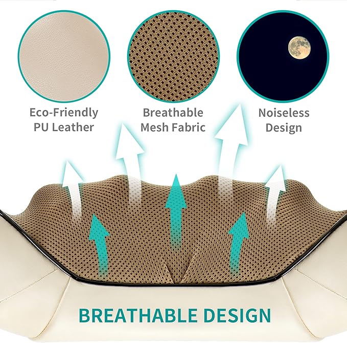 - Durable and Comfortable Matreial: Made of high-quality PU leather and breathable mesh fabric, Nekteck back massager is easy to use and clean. (The zipper is reversed design)