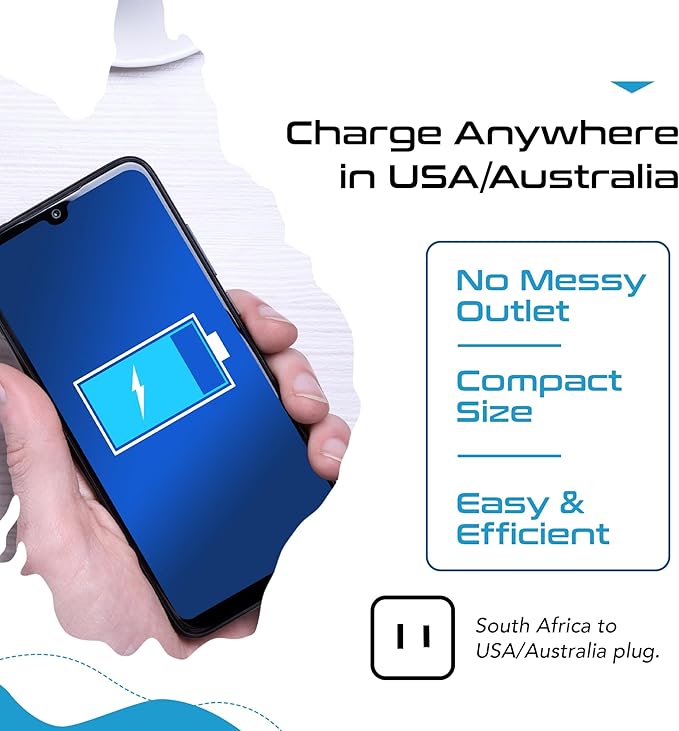 - Compact and Portable: The compact design of our south africa to usa plug makes it easy to pack and carry, ensuring convenience for frequent travellers or those with limited luggage space.