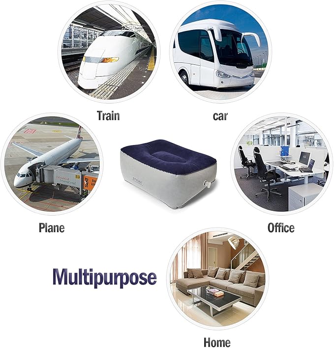 - DESIGNED TO PROVIDE FOOT AND LEG SUPPORT WHILE SITTING FOR LONG PERIODS - STYDDI inflatable foot rest pillow let your foot rest and comfortable after tiring work, or long-time travel on the train, bus and plane to ease the foot pain. Relax and rest on the long journey, ideal for travel, home, office, etc.