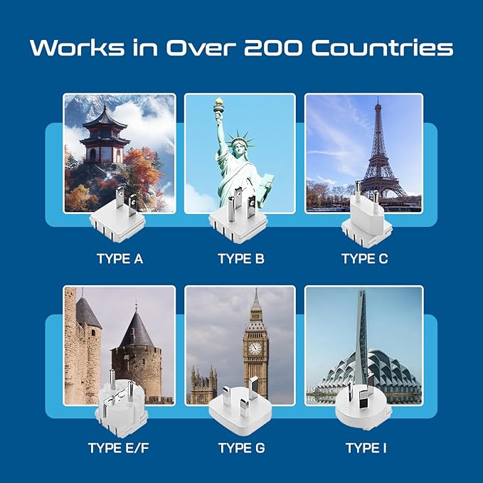 - International Power Adapter:Equipped with 2 USA outlets, 1x USB-A (3A), 1x USB-C and 1x PD 35W USB-C and USB-C cable-Perfect for travel - use with cell phones, laptops & other devices anywhere in the world - Few Exceptions Listed below.