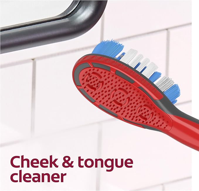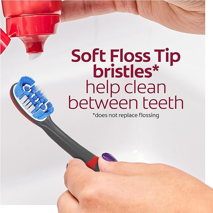 - Whitening toothbrush features soft Floss Tip bristles** that help clean between teeth (**does not replace flossing)