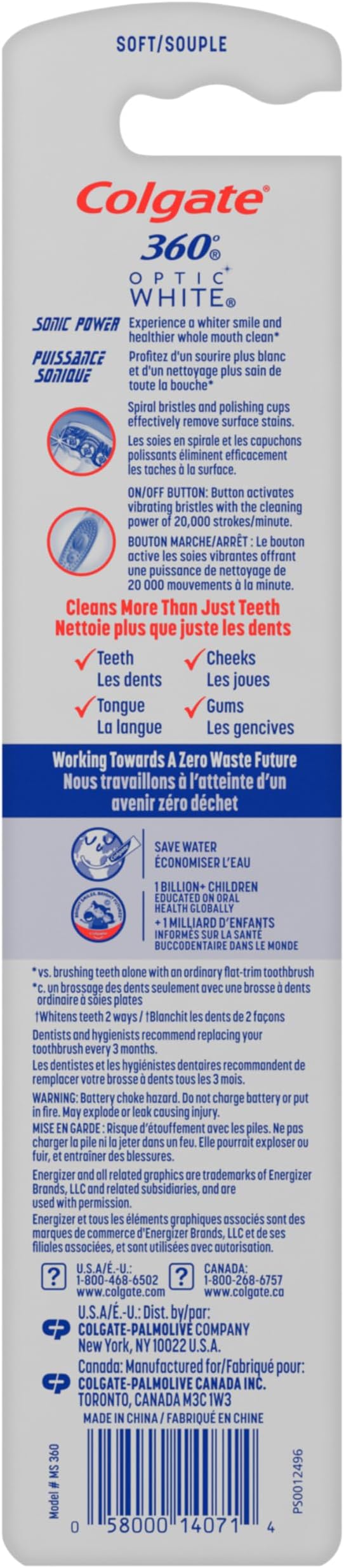 - Includes one (1) Colgate 360 Vibrate Whitening Battery-Operated Toothbrush, 1 AAA battery included
