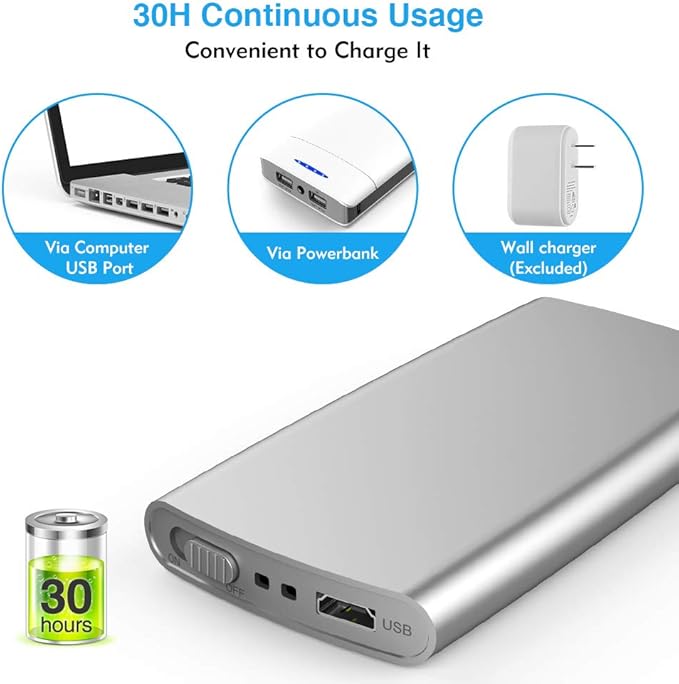 - Rechargeable Battery: Up to 30 Hours of Continuous Use. It can be connected to wall charger, power bank or laptop USB port to charge. Don't worries about treatment interruption for dead AA batteries any more.