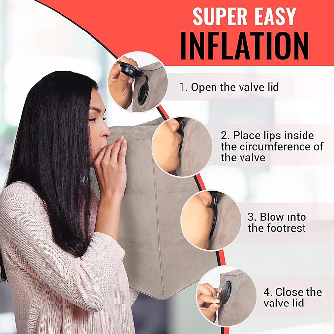 - 👌 SUPER EASY TO INFLATE - each Koala Kloud inflatable footrest is designed with our unique wide-circle, leakproof valve so you can fully inflate in less than 1 minute compared to two minutes with other travel footrests!