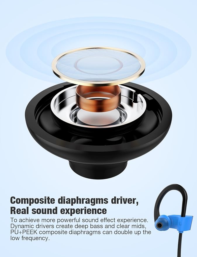 - 【IPX7 Waterproof Headphones】Otium workout Bluetooth earbuds with IPX7 sweat/water-resistant, 100% protects Sport headphones from sweat. Great for running, jogging, hiking, yoga, exercises, gym, traveling.