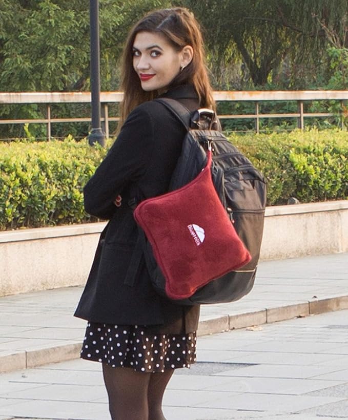 - Backpack clip included in the package: With the backpack clip / carabiner, you can clip this blanket pillow to any backpack or to any other luggage - with the soft red travel blanket.