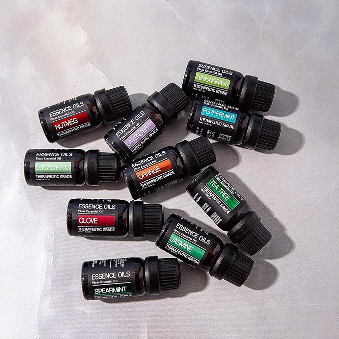 - Included Scents – This bundle includes 10 popular essential oil scents: lavender, eucalyptus, tea tree, orange, peppermint, lemongrass, jasmine, nutmeg, clove, and spearmint.