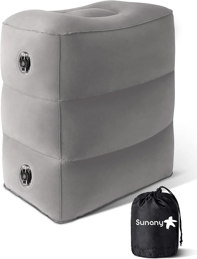 Sunany Inflatable Foot Rest Pillow for Travel, Kids/Adults Airplane Travel Pillow-Adjustable Height Cushions,for Kids to Sleep While Traveling,Suitable for Office, Home and Any Travell (1 Pack)
