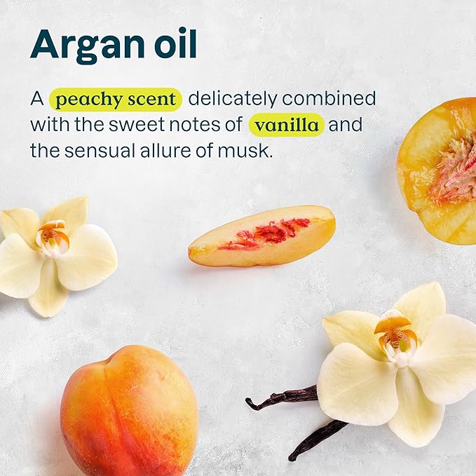 - ARGAN OIL: This body wash has a soft, comforting fragrance where juicy peach blends with sweet vanilla, leaving skin gently scented. A warm, relaxing ritual for women, men, or anyone seeking a more mindful wash experience.