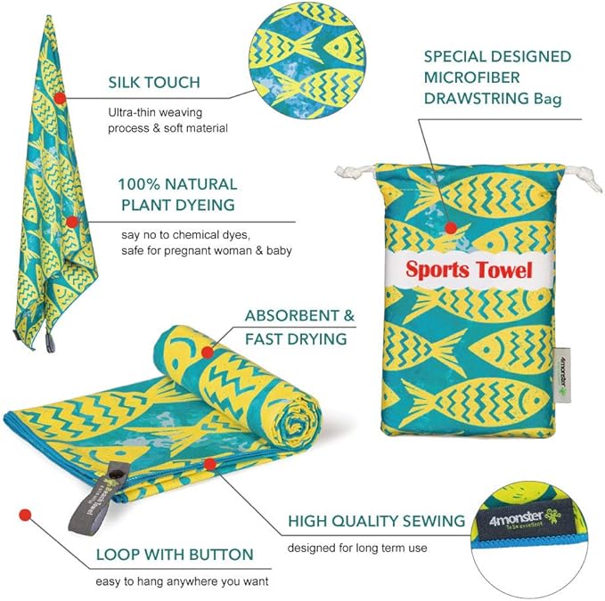 4Monster Microfiber Beach Towel Quick Dry,Super Absorbent Lightweight Travel Towel for Swimmers, Sand Free Camping Towel, Beach Towels for Pool,Swim,Water Sports,Yoga