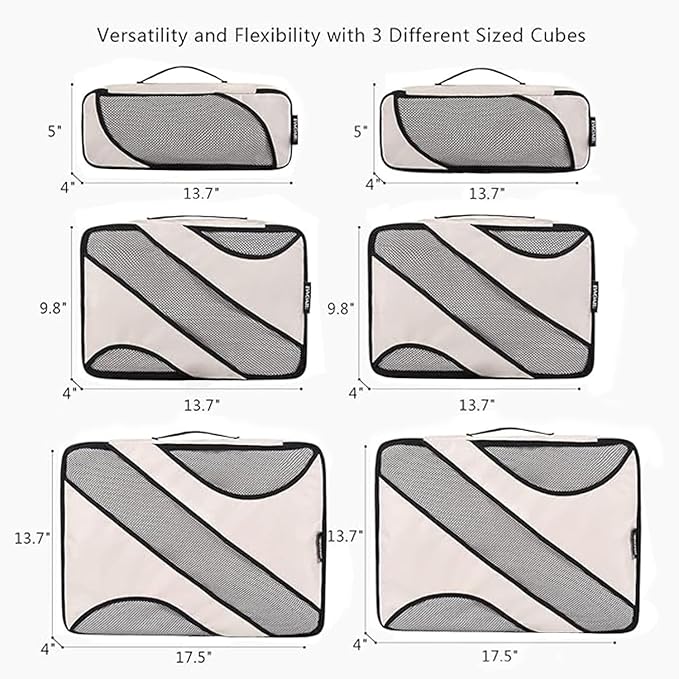 • Multi Functional: The 6 set organizers fit like a glove into regular suitcase; You can choose different cubes to fits your suitcase; That is an ideal way to keep organized for family breaks, business travel, long-distance travel, cruise holidays