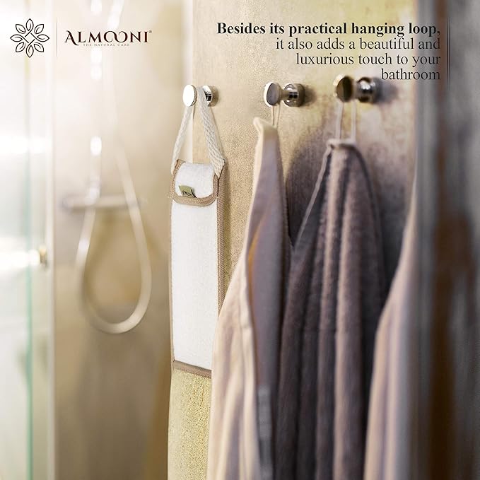 - FLEXIBLE LOOFAHS bend to the contours of your back. This ensures all-over back exfoliation and cleansing. ALMOONI shower loofah back scrubber are ideal for men and women.