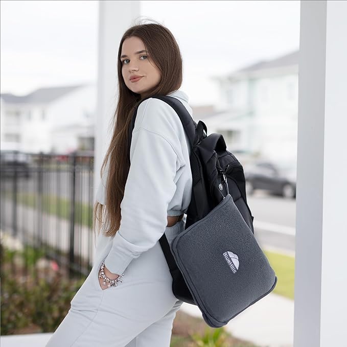 - Special Feature : Gray Blankets - The travel blanket pillow is highly durable and machine washable after all your picnics and as an easy packable blanket for airplane trips., Travel Backpack - Both the travel size blanket and the case weigh less than a pound, which is easily portable and can be used at stadiums, or as a couch blanket at home., Travel Bag - A soft, matching zipper case is offered with the travel blanket, which is perfect for picnics, outdoors, and traveling., Travel Essentials - When unfolded, it can be used as a soft blanket; when packed, it can be used as a travel pillow. It's perfect for long trips, RV, hostels, and concerts., Travel Size - Travel plush blanket comes with a hand luggage and a carabiner, which is convenient for plane travel or also used as a car blanket pillow. Gray Blankets - The travel blanket pillow is highly durable and machine washable after all your picnics and as an easy packable blanket for airplane trips., Travel Backpack - Bo… See more