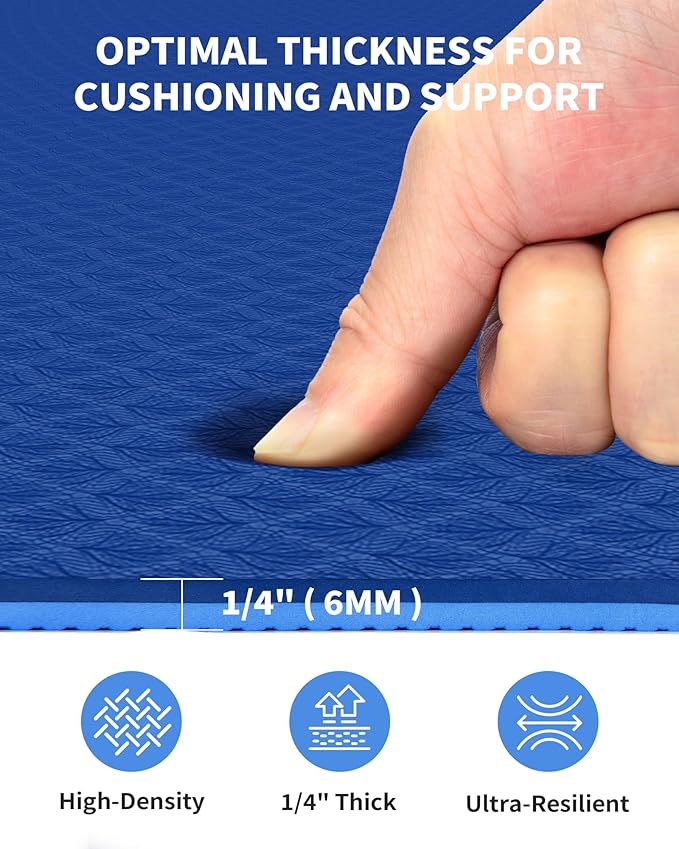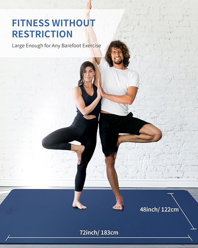 - Fitness Without Restriction: Extra length and width(72"x 48"), You will never feel restricted or limited by the size of this fitness mat; Extra-large space allows you to do any Yoga Poses, Pilates, Stretch, Foam Rolling, Cardio Workouts, Meditations and various barefoot bodyweight training like Squats, Lunges, Push-ups, Plank Variations, and Calisthenics