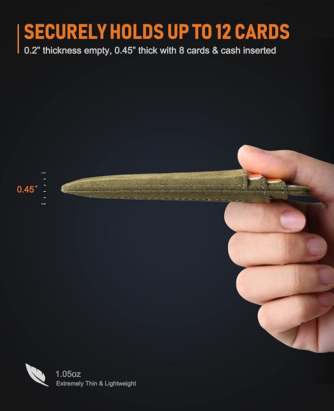 - SURPRISINGLY SPACIOUS: Though slim, it features 8 slots to easily organize your essentials. Comfortably holds your driver's license, credit cards, debit cards, and membership cards, keeping everything you need right at your fingertips.