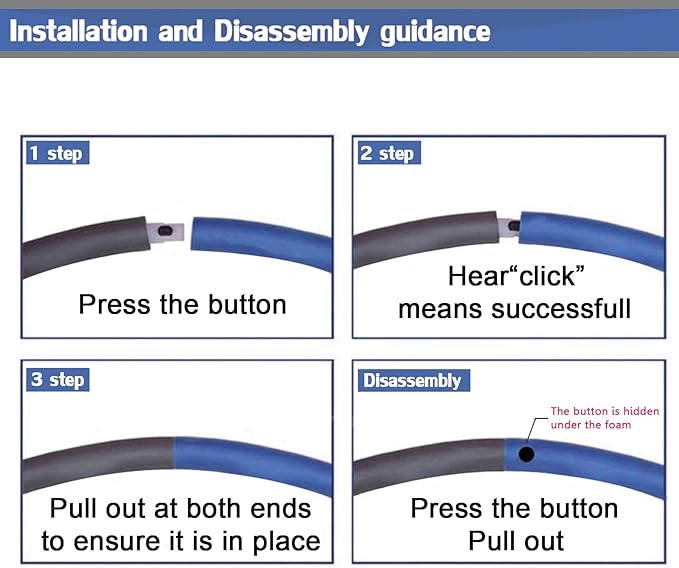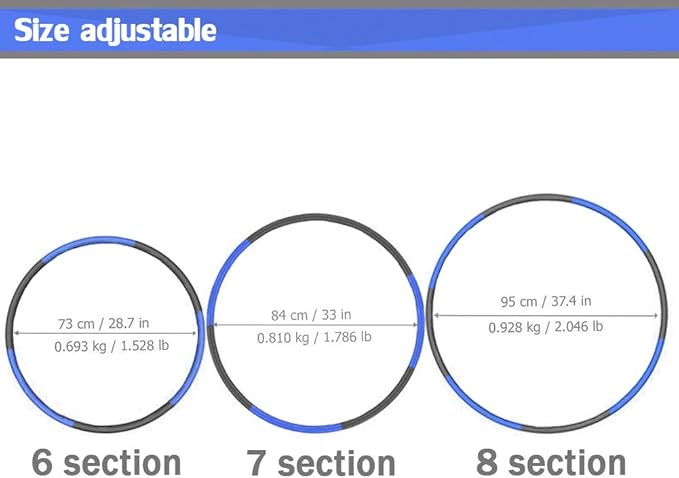 - SIZE ADJUSTABLE: according to your figure it can be adjusted. The package contains 8 sections, 1.9 pounds and measures 38 inches wide. We can remove 1 or 2 sections, and then set up 7 sections or 6 sections hoop.