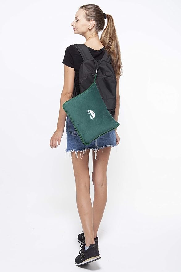 - Backpack clip included in the package: With the backpack clip / carabiner, you can clip this blanket pillow to any backpack or to any other luggage - with the soft dark green travel blanket.