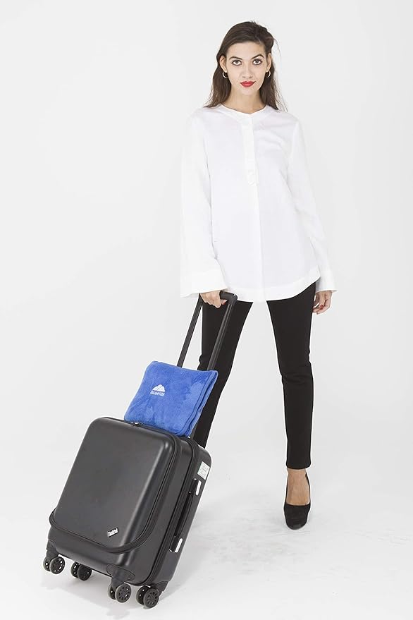 - Special Feature : Blue Travel Throw - Flight travel accessories, as the soft blanket fits into the zipper pouch, which is perfect for international travel, picnics, and outdoor travel., Lumpy Travel Pillow: The blanket's versatility allows it to be used as a small soft travel pillow during flights or as a camping blanket that is easily packable., Travel Case - Large travel size blanket that is also machine-washable and perfect for long trips, RV, hostels, and concerts., Travel Essentials - Blue Blanket measures 60 x 43 inches and is perfect for use as a couch throw blanket at home., Travel Gifts: A soft, warm, and lightweight micro-plush blanket to keep you comfortable on planes, trains, cars, and buses. Blue Travel Throw - Flight travel accessories, as the soft blanket fits into the zipper pouch, which is perfect for international travel, picnics, and outdoor travel., Lumpy T… See more