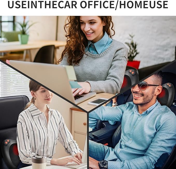 - 【Portable Back Massager】The shiatsu neck & back massager with heat comes with a regular adapter(110-240V) and car adapter(12V). you can enjoy a professional massage at home, in the office, or car. Adjustable strap to secure the massage pillow to your favored chair so you can easily enjoy a relaxing healthy massage wherever you are.