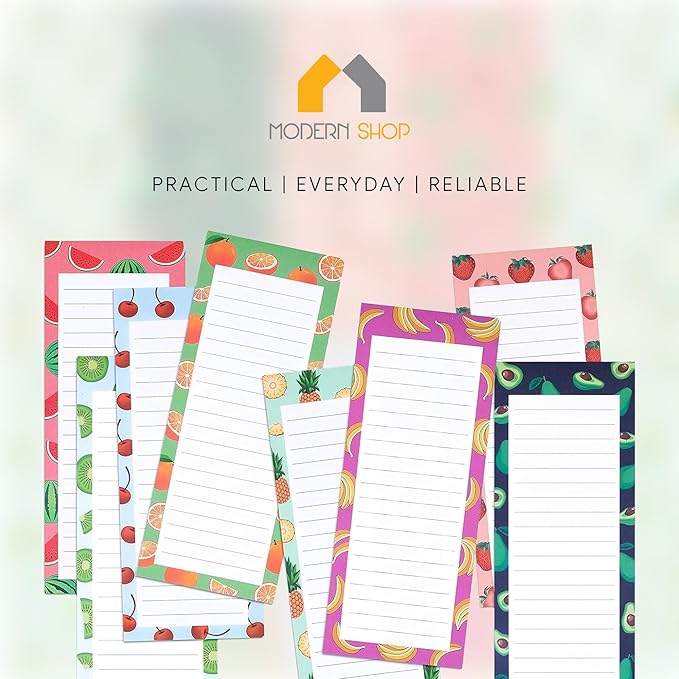 - BEAUTIFUL & REALISTIC FRUIT DESIGN - These 8 stick-and-go magnet note pads stand out because of their aesthetically designed borders, featuring a realistic and refreshing summer watermelon, a cute avocado, a retro banana theme, a succulent kiwi, juicy pineapples, mouthwatering strawberries, and fresh orange with natural colors. Perfect for use as fridge note pad, grocery list note pad, to do list note pad