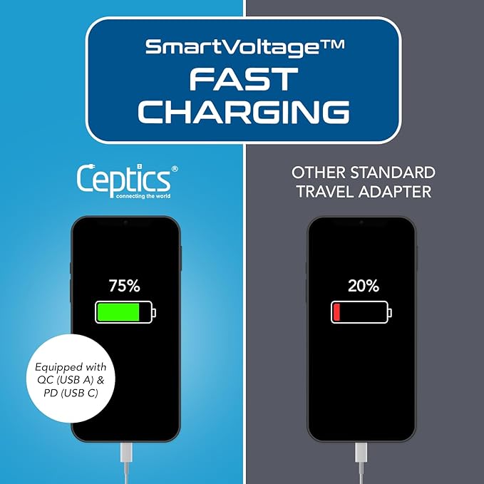 - [NO 1 TRAVEL ADAPTER BRAND] Safest Desgined in the USA makes our adapters the most reliable and NO 1 Adapters in the Market Supports upto 18W of high speed power with Power Delivery & Quick Charge 3 0 Capability Charge your device upto 50% in as little as 30 minutes