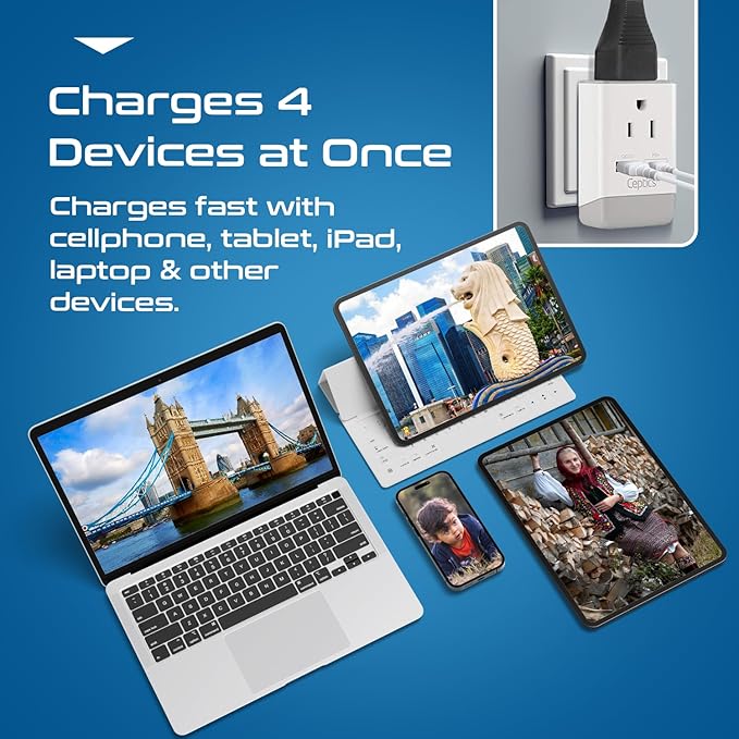 - [CHARGE 4 DEVICES AT ONCE] Supports Quick Charge 3 0 (QC) USB & Power Delivery (PD) USB-C 2 USA Input 1x USB & 1x USB-C (Total Max 3 1A) Perfect for fast charging cell phone camera laptop tablets ipads iphones kindle chargers CPAP and power bank & more