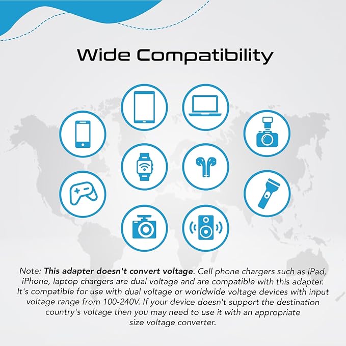 - [SLIM & RELIABLE] - Slimmest International Adaptor Small Size Travel Gadget - 1 18 x 1 78 x 2 89" Note This travel adapter plug is compatible with only Dual Voltage products & Electronics It will not work with 110V items such as hair clippers CPAP machine hair dryers & curling irons etc It is NOT a voltage converter and it will not convert voltage from 220V to 110V or vice versa Comes with 24 Month Full Ceptics