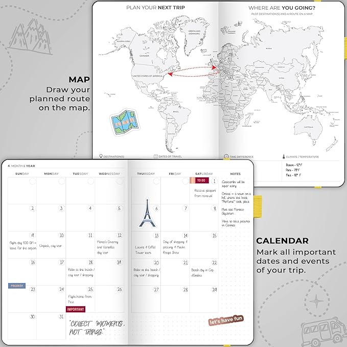 - TRIP WORTH BEING REMEMBERED: This travel log book journal helps you plan your trips in detail. You can use the travel diary journal to prepare lists of places to see and things to do, plan your itinerary and budget, and document memorable moments.