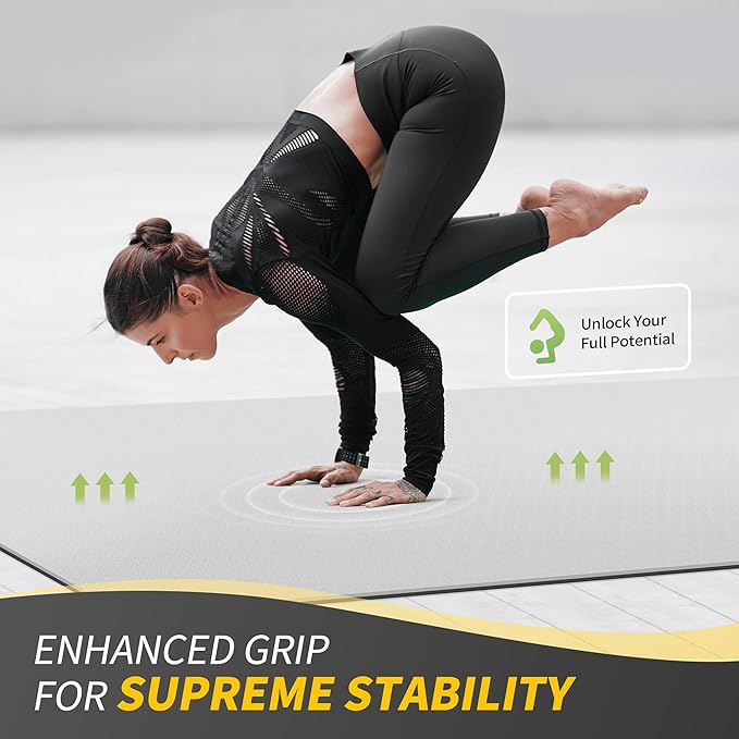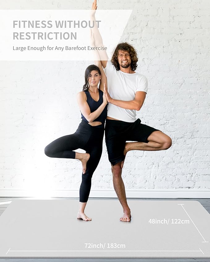 - Fitness Without Restriction: Extra length and width(72"x 48"), You will never feel restricted or limited by the size of this fitness yoga mat; Extra-large space allows you to do any Yoga Poses, Pilates, Stretch, Foam Rolling, Cardio Workouts, Meditations and various barefoot bodyweight training like Squats, Lunges, Push-ups, Plank Variations, and Calisthenics
