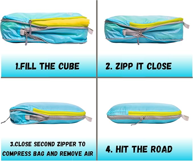 - Save that needed space and time while packing - double zipper compression system that vacuum the excess air from the cubes and makes them incredibly compact.