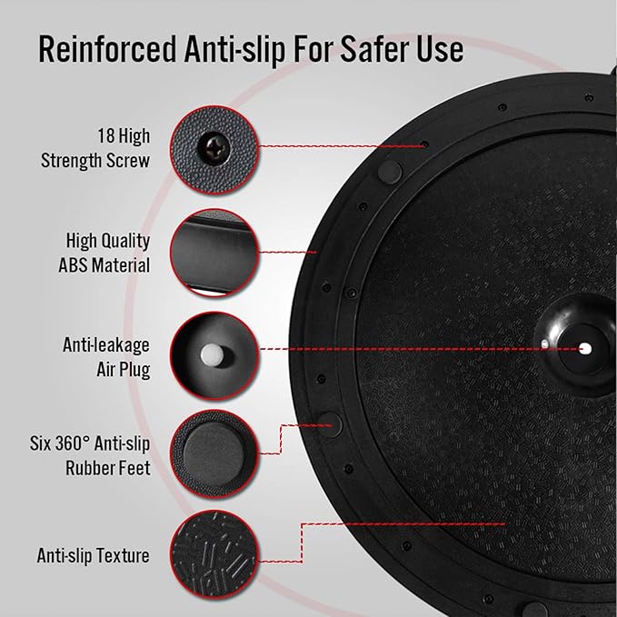 - ANTI-SLIDE & ANTI-BURST DESIGN --- JX FITNESS yoga half ball upgraded anti-skid texture surface & anti-slide base to improve users' stability. Wear-resistant ABS base plus 6 non-skid feet and anti-burst technology gives you additional safe guarantee that allows you to safely stand, jump, kneel, or lay on this balance trainer, for a worry-free workout. Guarantee safety during use even when you're sweaty. JX FITNESS balance trainer ball is made from durable rubber and sturdy, ABS plastic.