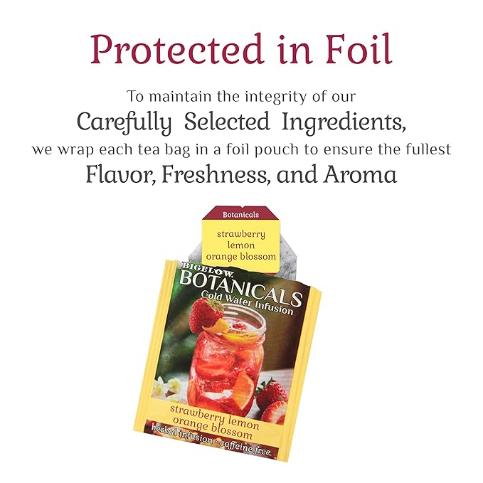 Bigelow Botanicals Cold Water Infusion Strawberry Lemon Orange Blossom Herbal Tea, Caffeine Free Tea with Strawberry, Lemon and Orange Flavor, 18 Count Box (Pack of 6), 108 Total Tea Bags