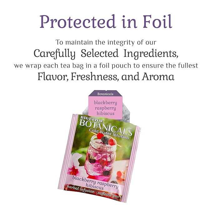 Bigelow Botanicals Cold Water Infusion Blackberry Raspberry Hibiscus Herbal Tea, Caffeine Free Tea with Blackberry and Raspberry Flavor, 18 Count Box (Pack of 6), 108 Total Tea Bags