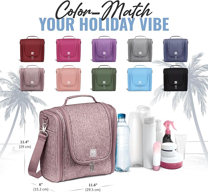 • If you want a large makeup bag, a cosmetic, or an accessories organizer, Boacay toiletry bag is for you. It is multifunctional, has metal zipper pulls, and it’s made of only high-quality materials.