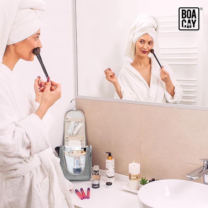 BOACAY Small Hanging Travel Toiletry Bag for Women and Men, Makeup Bag, Bathroom & Shower Organizer Kit for Accessories, Cosmetics, Travel Essentials