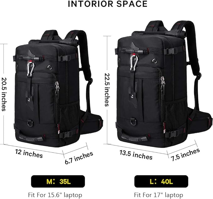 - Large-capacity Backpack: The backpack Size – 22.5 X 13.5 X 7.5 inches, Laptop Compartment Dimensions – 21 X 12.2 X 6 inches Capacity:40L (Large size fits most 17.3" Laptop.)weight:4.2 LBS