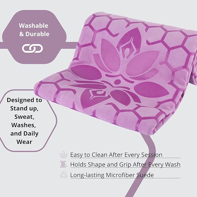 Clever Yoga Non-Slip Hot Yoga Towel – Non-Slip Grip for Hot Yoga, Sweat Absorbent, Honeycomb Silicone Grip, Stays Flat – Ideal for Pilates, Travel, Washable & Lightweight - Lilac