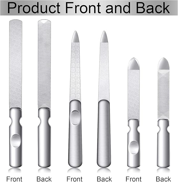 - Clever and Thoughtful: our metal nail files are designed with double sided style and anti-slip handle, one side is rough surface and the other side is fine surface, helps to polish your nail surface and file the nail edges, the handle is nonslip, safer and more thoughtful to operate